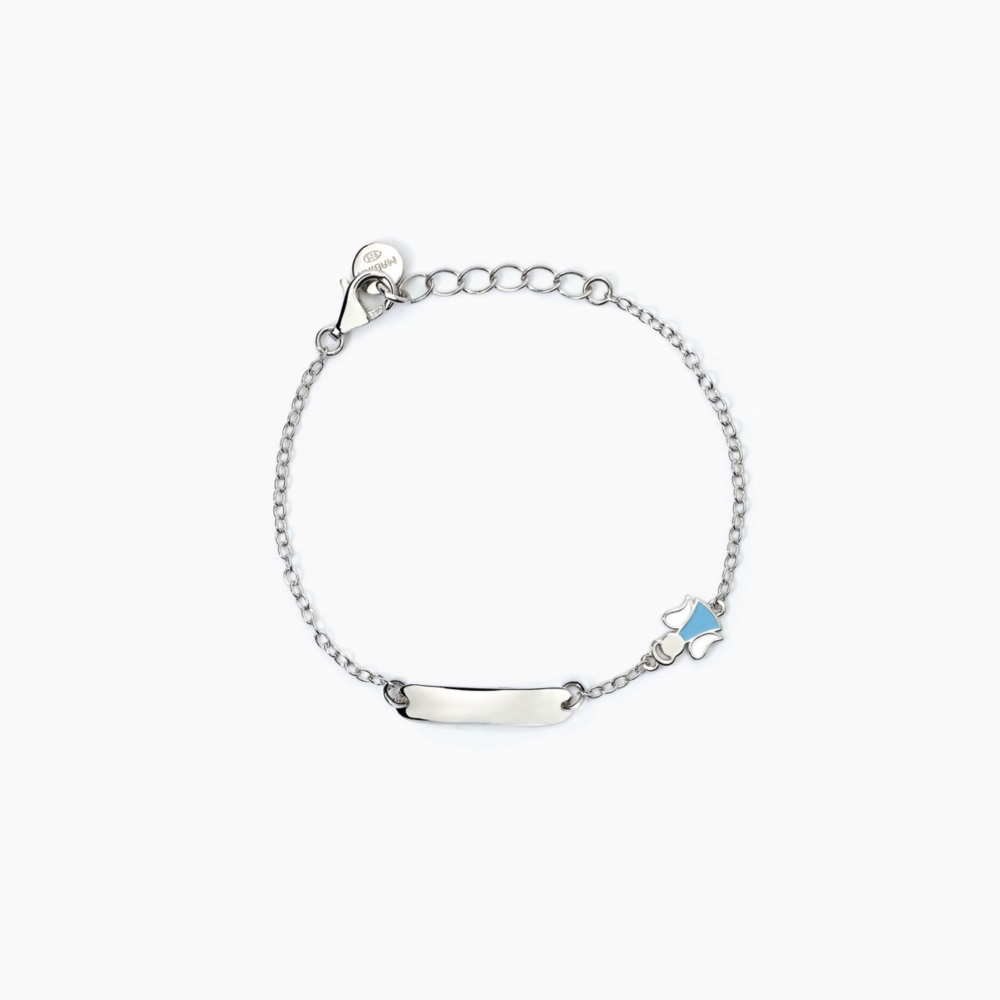 Bracciale neonato mabina, 533793, collezione argento junior, in argento 925 rodiato con angioletto smaltato, piastra personalizzabile e possibilità di effettuare incisioni