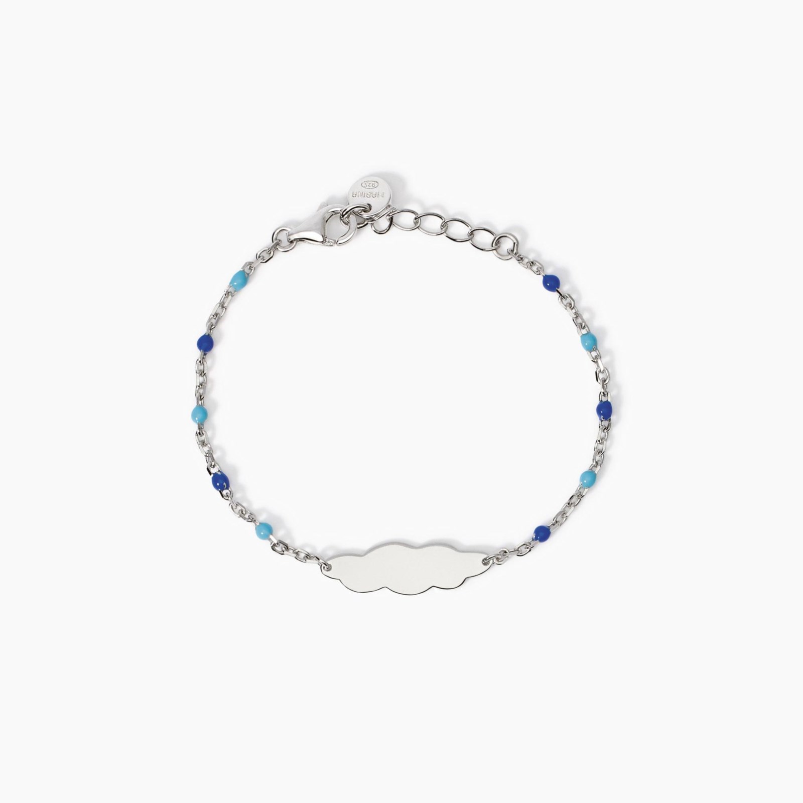 Bracciale bimbi mabina, 534033, collezione argento junior, in argento rodiato con catena forzatina e inserti multicolor smaltati blu. Piastra centrale a forma di nuvoletta.