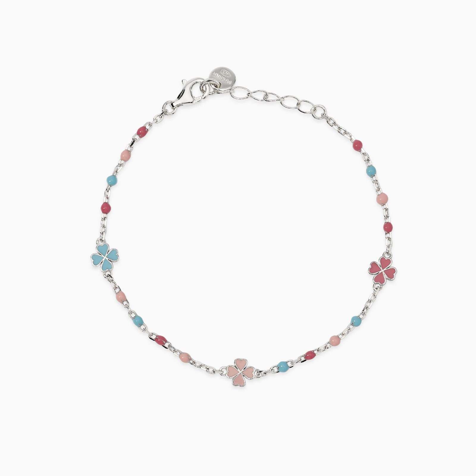 Bracciale bimba mabina, 534134, collezione argento junior, in argento rodiato con catena forzatina e inserti multicolor con quadrifogli smaltati.