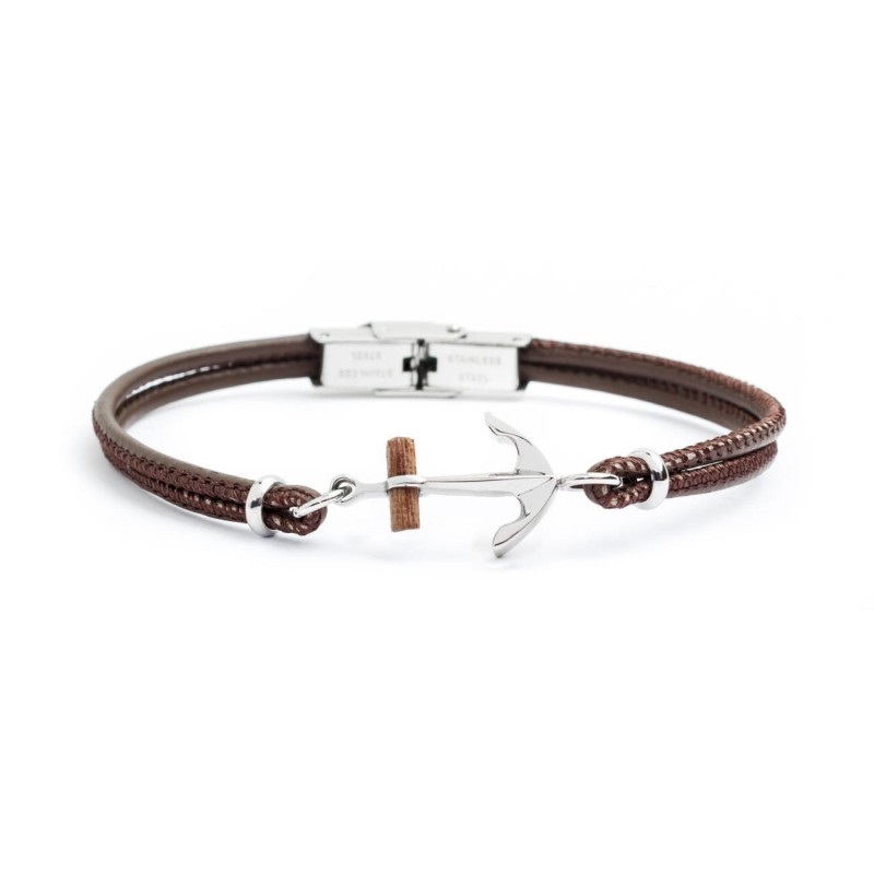 Bracciale uomo marlù, 4BR1817N , collezione icons, in pelle con ancora in legno e acciaio.