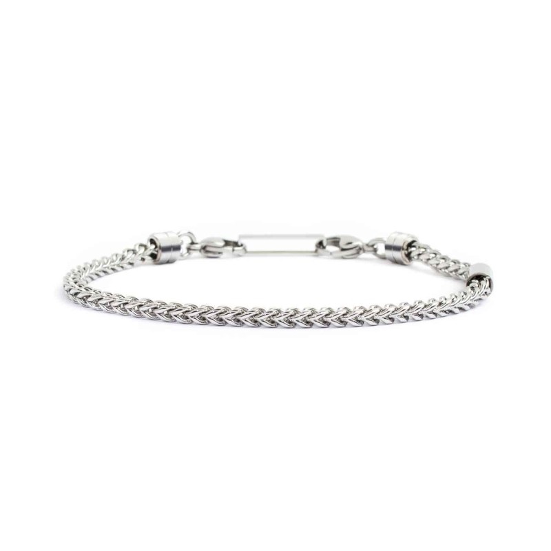 Bracciale uomo marlù, 4BR1833, collezione icons, in acciaio con catena fishbone 2, 70 mm e barilotto all'estremità texturizzato Lunghezza 19/21 cm regolabile