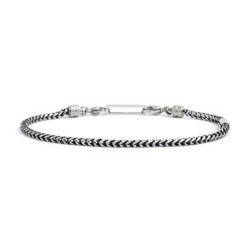 Bracciale uomo marlù, 4BR1833BR, collezione icons, in acciaio brunito con catena fishbone 2, 70 mm e barilotto all'estremità texturizzato Lunghezza 19/21 cm regolabile