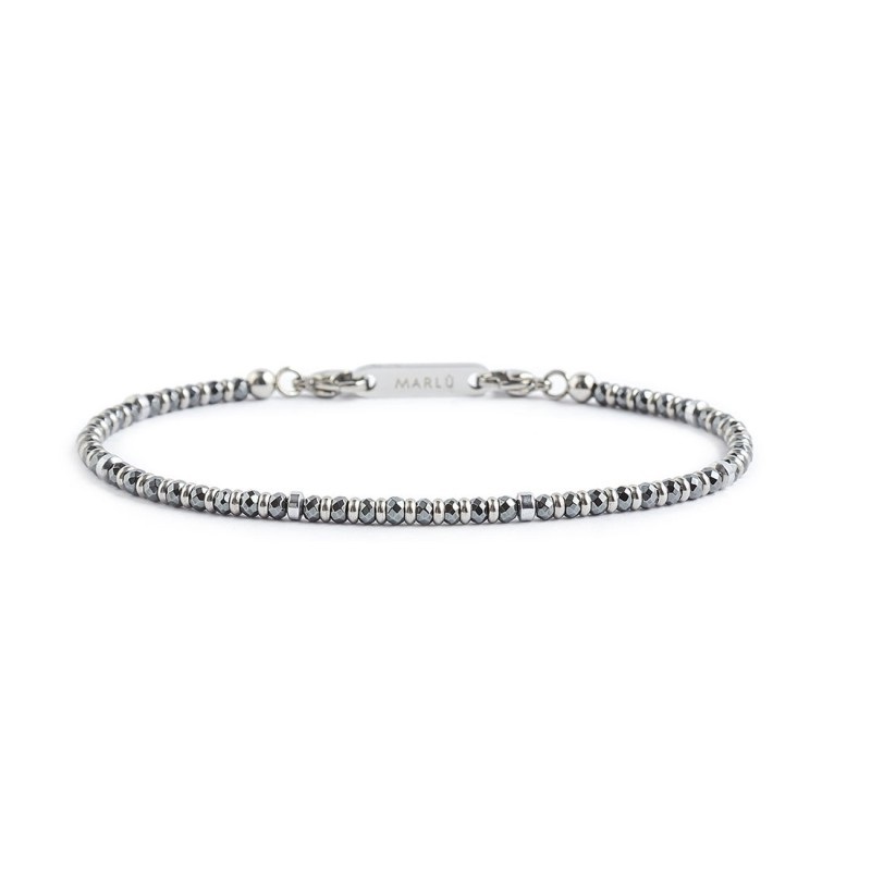 Bracciale uomo marlù, 1BR0069-E, collezione sparkles, in acciaio con catena box, con elementi di ematite sfaccettata e liscia alternata ad elementi in acciaio.