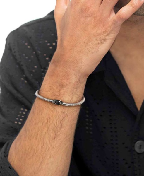 Bracciale uomo marlù, 33BR0035-N, collezione vision, in acciaio con catena snake tonda e zircone quadrato nero centrale. Lunghezza totale 22, 8 cm, regolabile da 22, 8 a 19 cm.