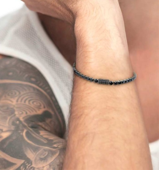 Bracciale uomo marlù, 33BR0036N-S, collezione vision, in acciaio con catena tennis con cubic zirconia neri con spessore 4 mm.