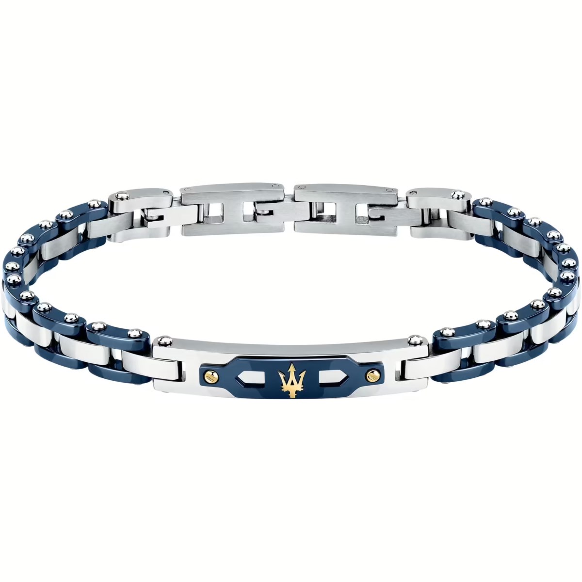 Bracciale uomo maserati, JM424AXU03, collezione ceramic gold, in acciaio, oro 18k e ceramica blu
