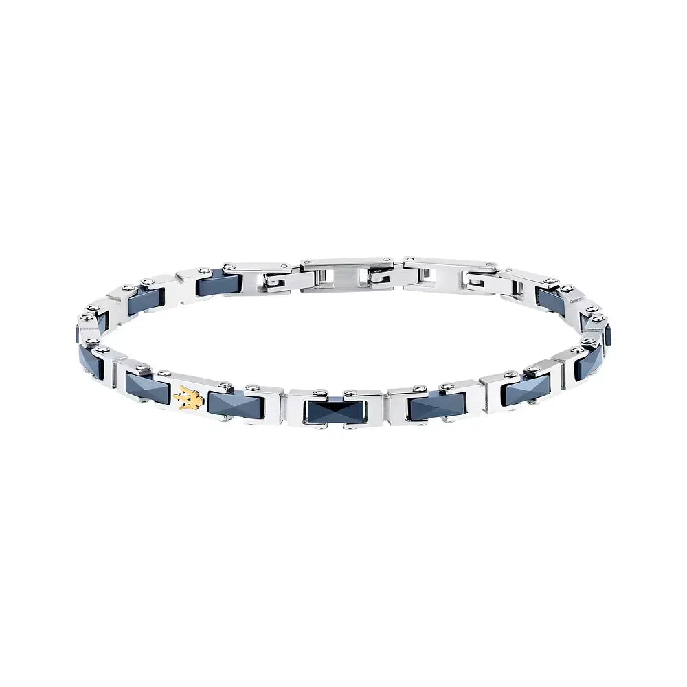 Bracciale uomo maserati, JM226ATZ82, collezione ceramic, in Acciaio e Ceramica Colore Blu, Peso: 17, 920 gr Lunghezza: 18 cm + 3.5 cm di estensione.