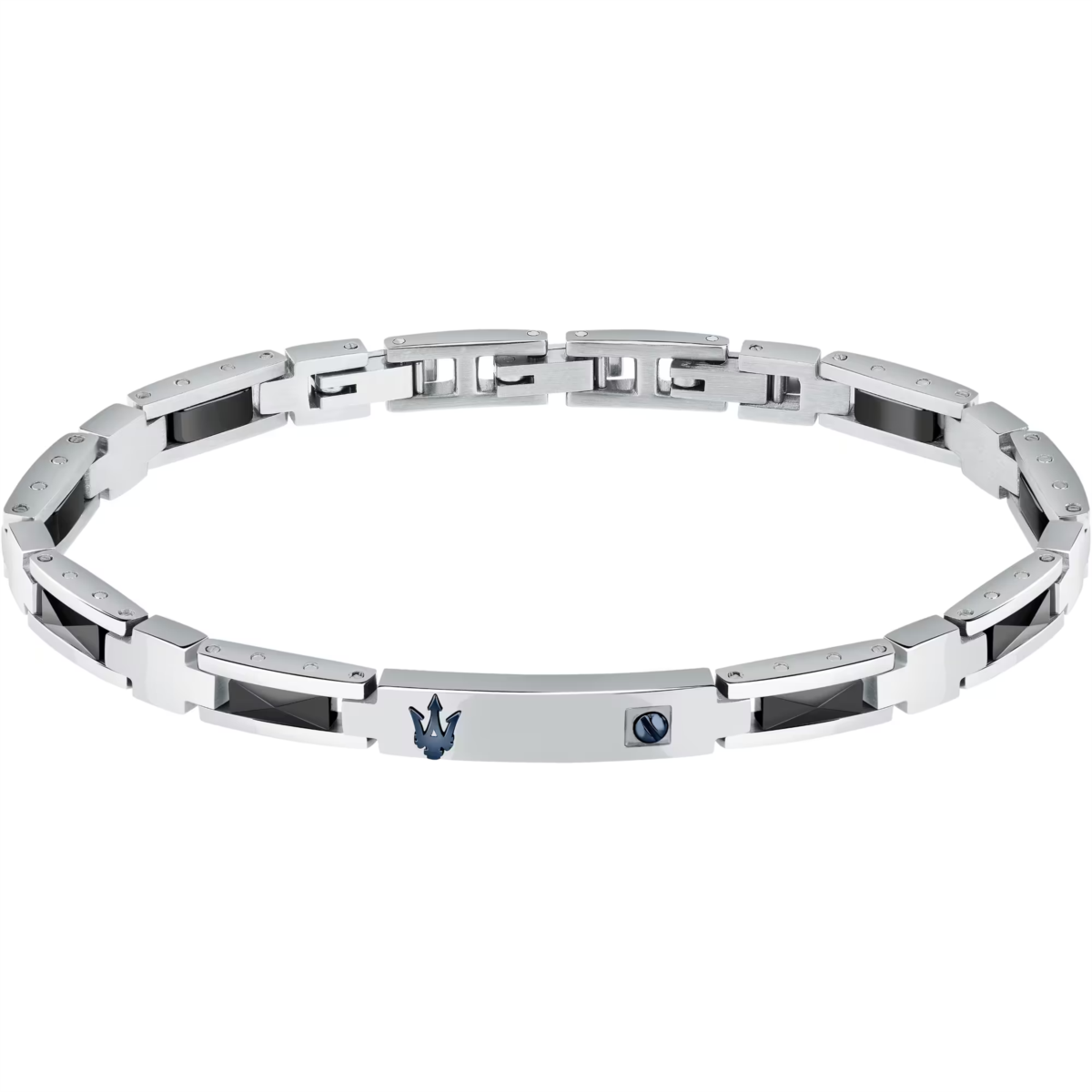 Bracciale uomo maserati, JM423ATZ28, collezione ceramic, in acciaio e ceramica nera, lunghezza 18, 5cm+3cm