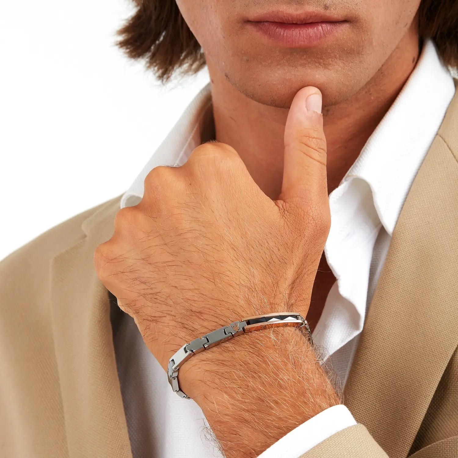 Bracciale uomo maserati, JM423ATZ32, collezione ceramic, in acciaio e ceramica nera, lunghezza 18, 5cm+3cm