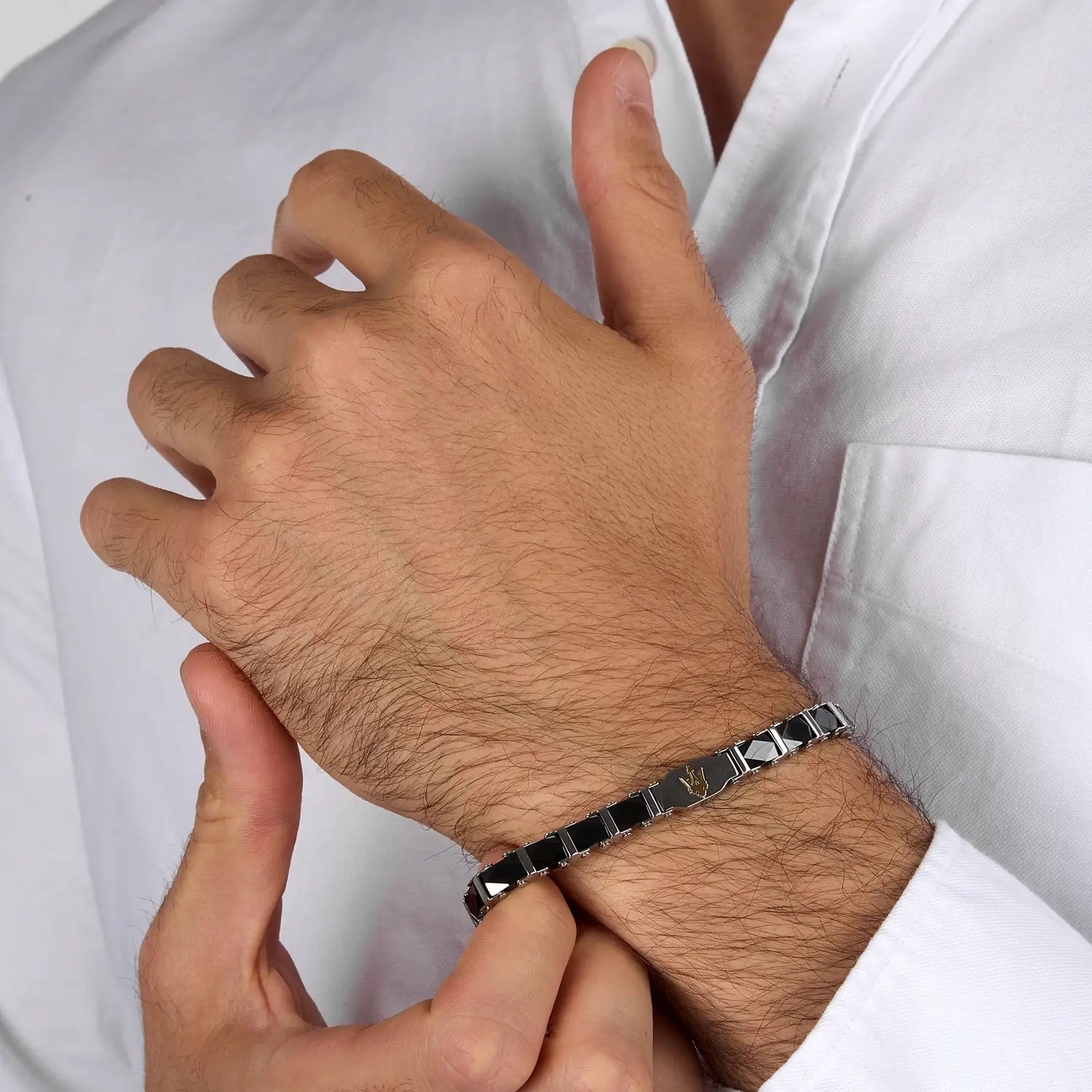 Bracciale uomo maserati, JM424ATZ44, collezione ceramic, in acciaio e ceramica, lunghezza 18cm