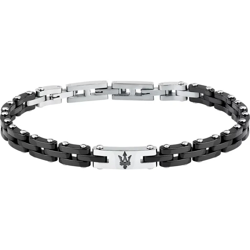 Bracciale uomo maserati, JM425ATZ64, collezione ceramic, in acciaio e acciaio nero, lunghezza regolabile da 18 a 21, 5 cm