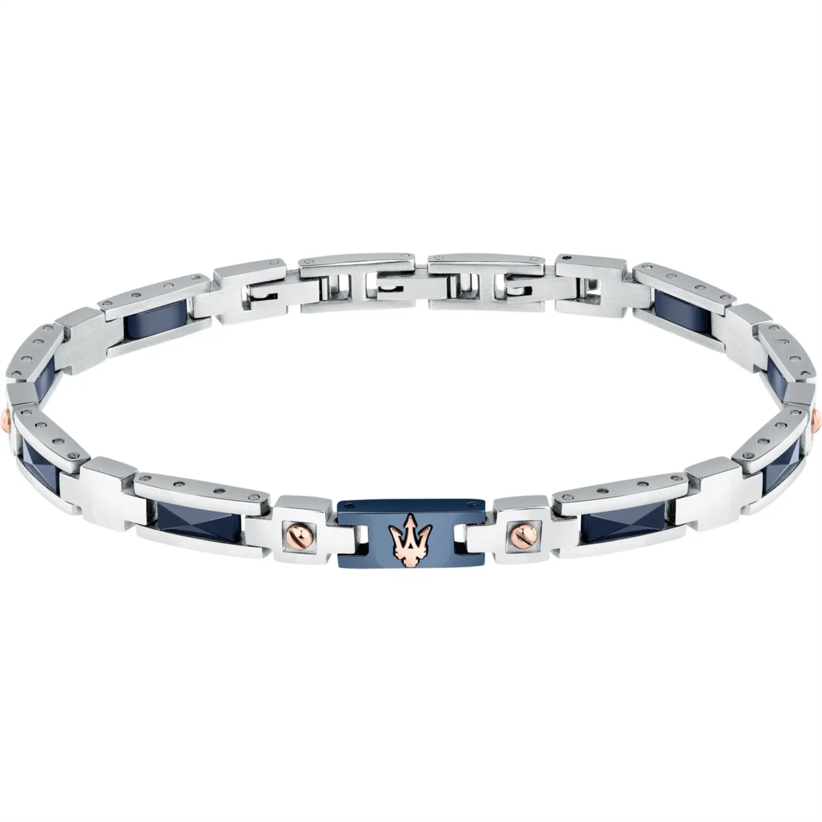 Bracciale uomo maserati, JM523ATZ33, collezione ceramic, in acciaio e ceramica blu, lunghezza 18, 5cm+3cm