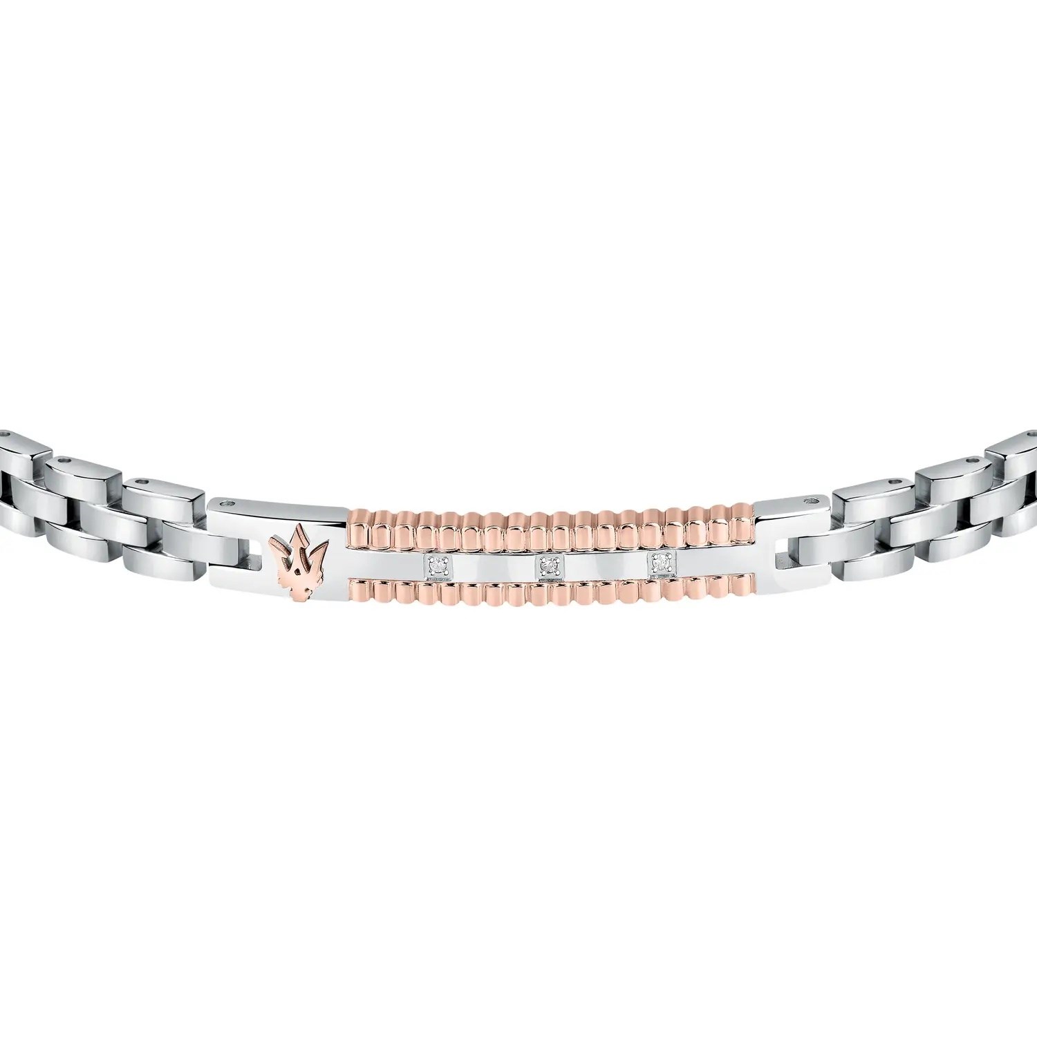 Bracciale uomo maserati, JM423ATY18, collezione diamonds, in acciaio/acciaio rosa e diamanti, lunghezza 18cm+3, 5cm