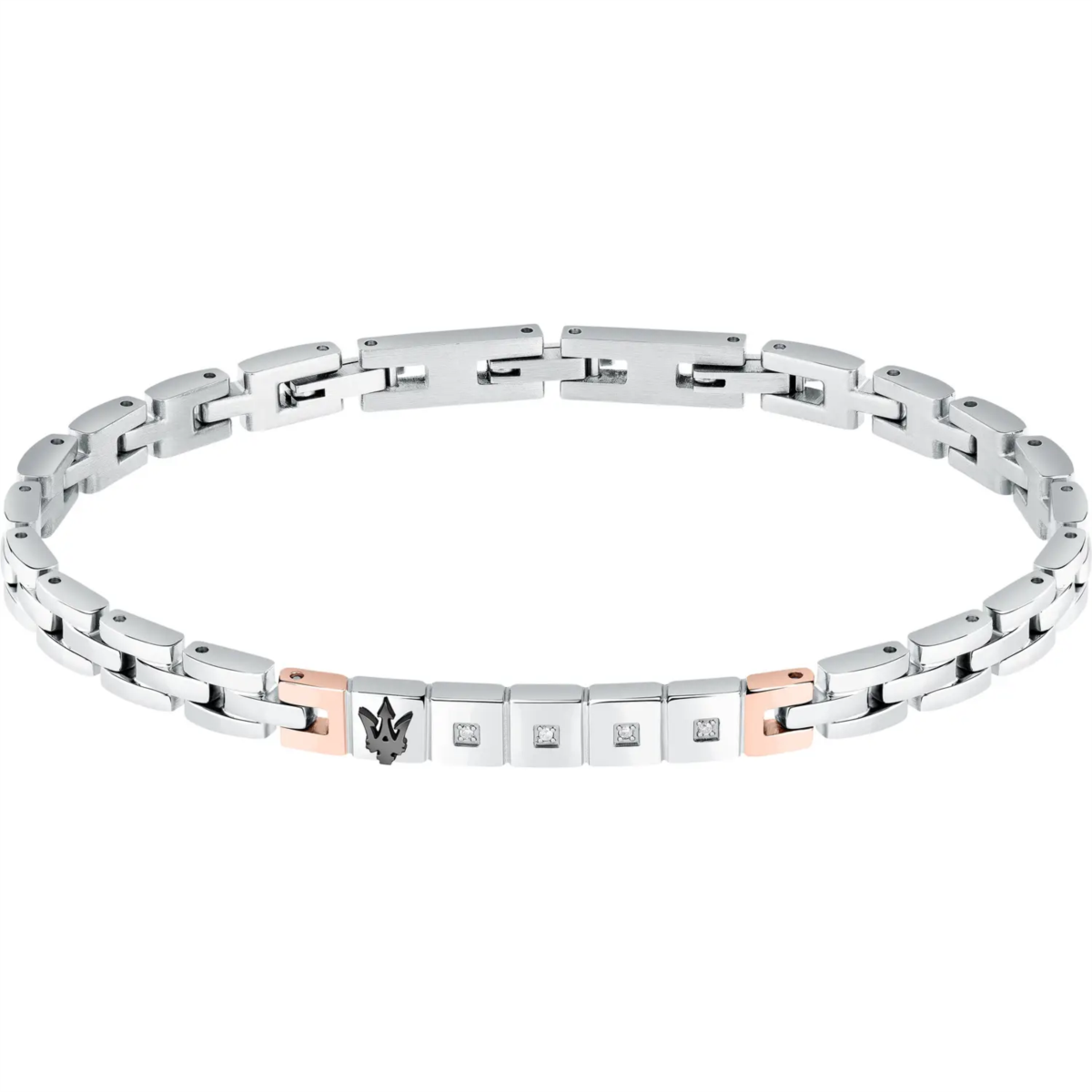 Bracciale uomo maserati, JM423ATY19, collezione diamonds, in acciaio e diamanti, lunghezza 18cm+3, 5cm