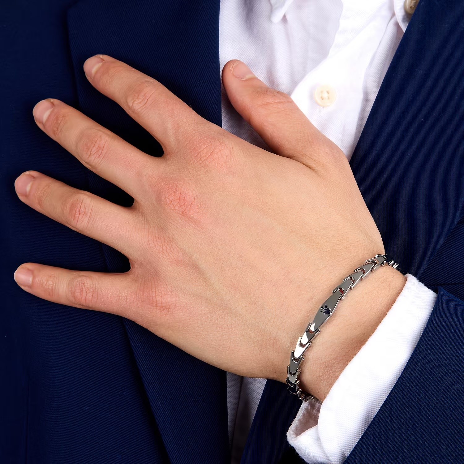 Bracciale uomo maserati, JM225AVD85, collezione iconic, in acciaio, misura 18cm+3, 5cm