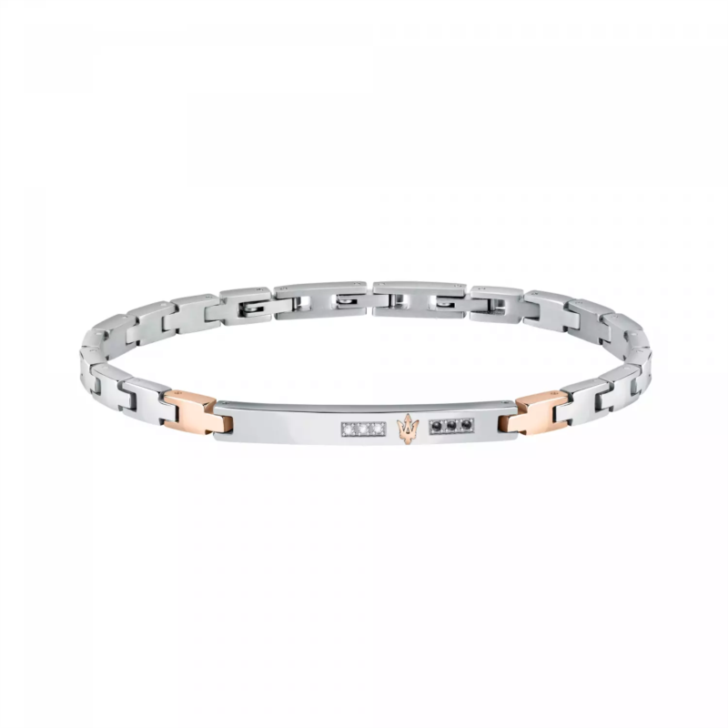 Bracciale uomo maserati, Jm521aty11, collezione J, in acciaio/acciaio rosa con diamanti, lunghezza 22cm