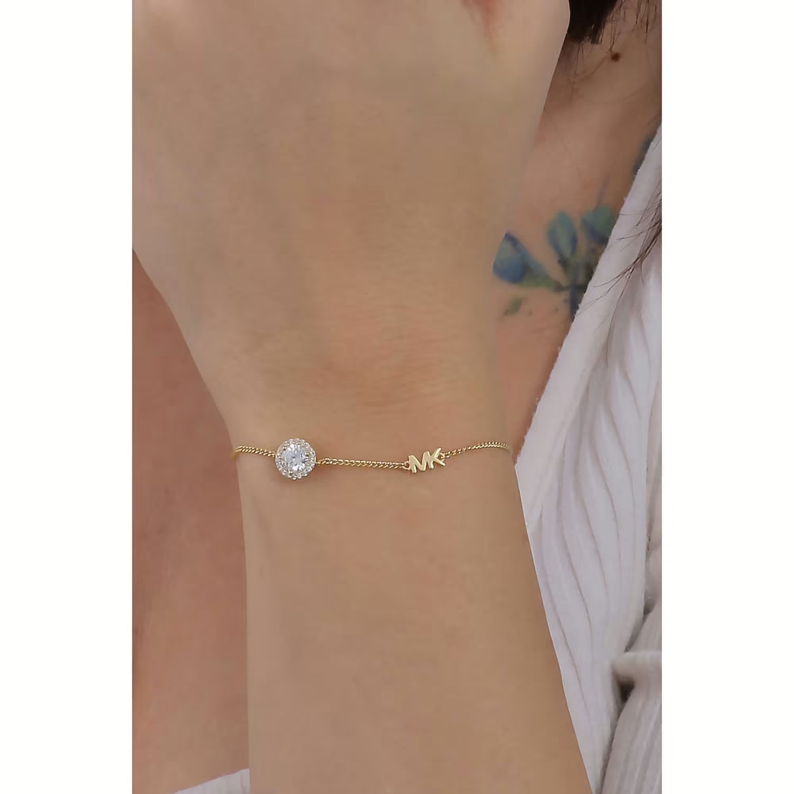 Bracciale donna michael kors, MKC1206AN710, collezione brilliance, in argento 925 dorato e zirconi, misura 21.5cm
