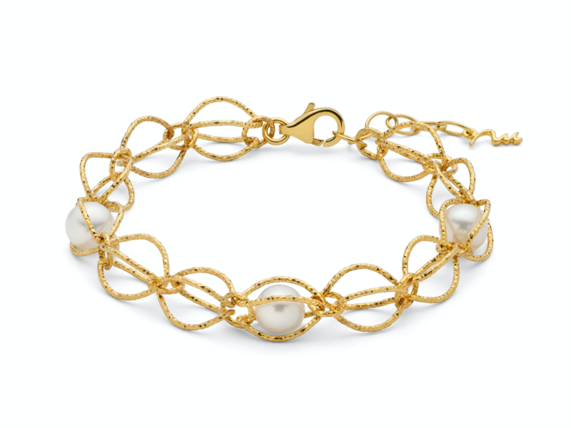 Bracciale donna miluna, Pbr3345g, collezione i gioielli di miss italia, in argento 925 dorato con perle, lunghezza 18cm regolabile