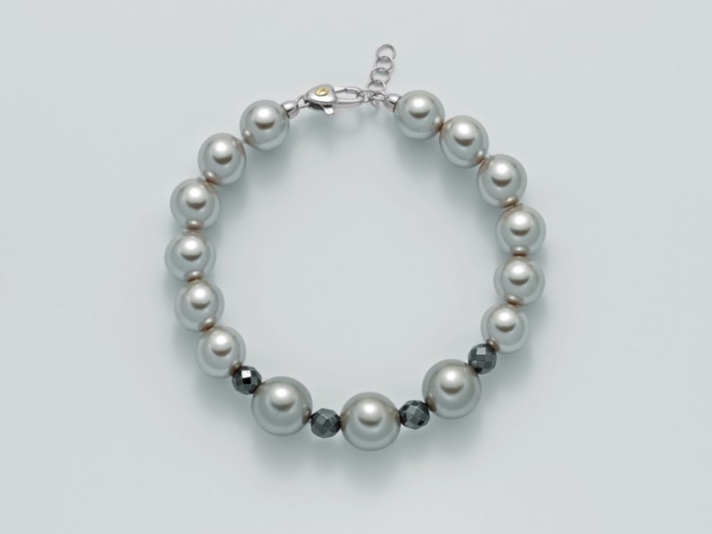 Bracciale donna miluna, Br733, collezione la perla di madreperla Oro 750/1000 Argento 925/1000 Fl 0, 12 Ematite Rondella Taglio Sfaccettato mm 10x6, Fl 0, 1 Madreperla agglomerata Col.Anthracite Grey mm 10, Fl 0, 15 Madreperla agglomerata Col.Bianco mm 10, Fl 0, 09 Madreperla agglomerata Col.Bianco mm 12.