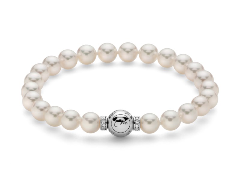 Bracciale donna miluna, PBR3095, PREMIUM PERLE; Oro 750/1000 Nr 25 Diamanti naturali Pt.tot 23, 2 Col.G Pur.SI Taglio Brillante Rotondo Fl 0, 44 Perle Akoya Gold Spec.
