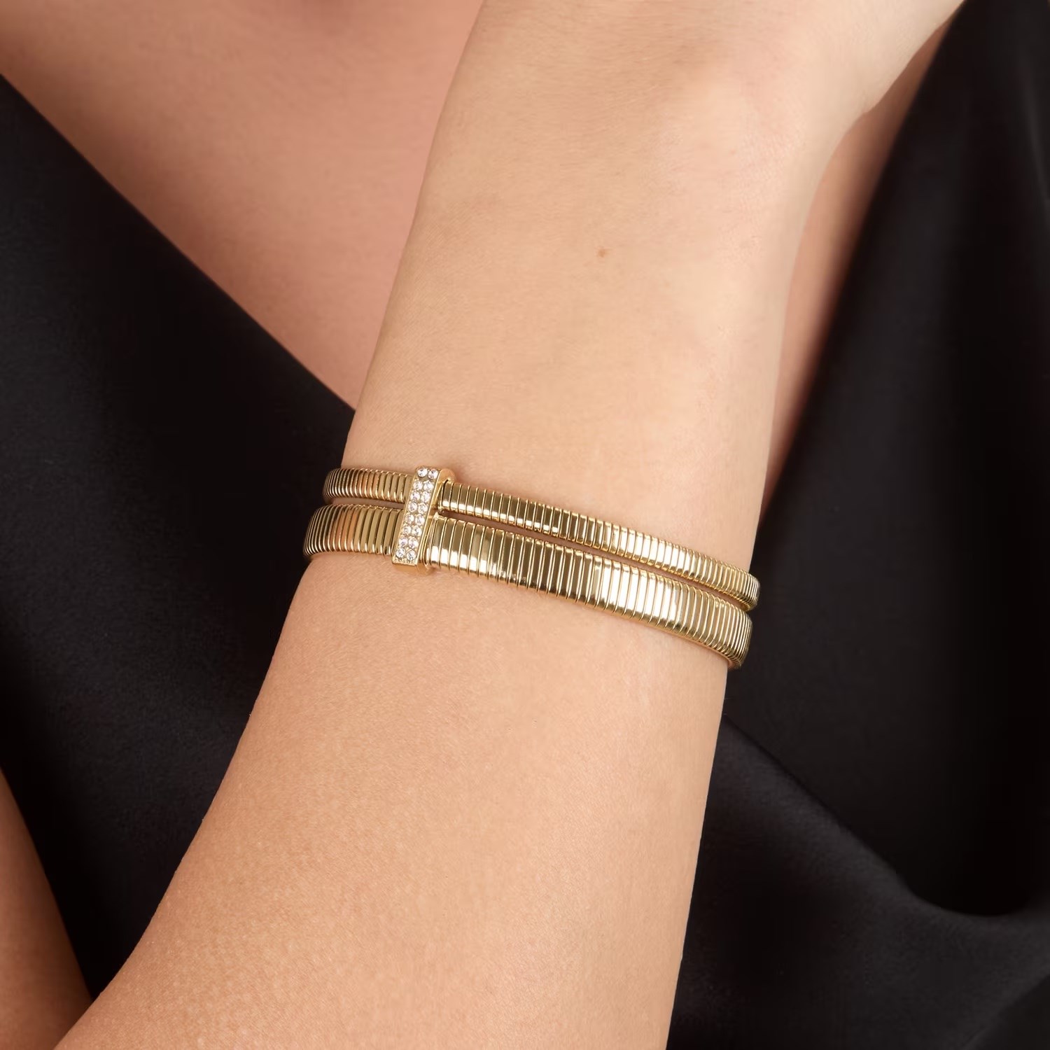 Bracciale donna morellato, SAZP06, collezione onda, in acciaio dorato e cristalli, diametro 60mm