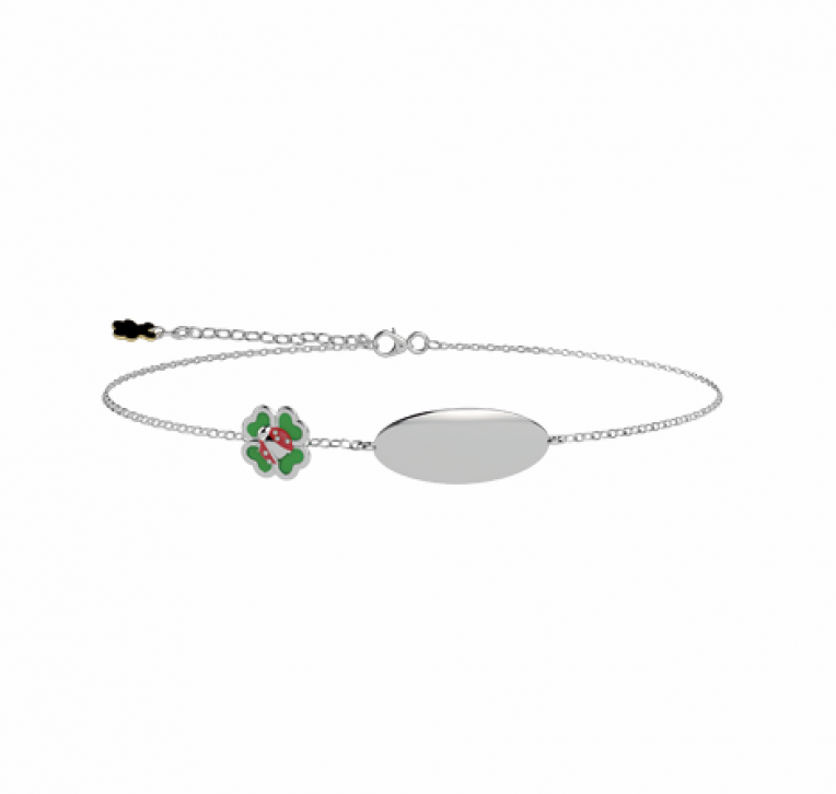 Bracciale bimba nanàn, NAN0594, collezione collection bracciale, in argento 925% con quadrifoglio smaltato e targhetta.