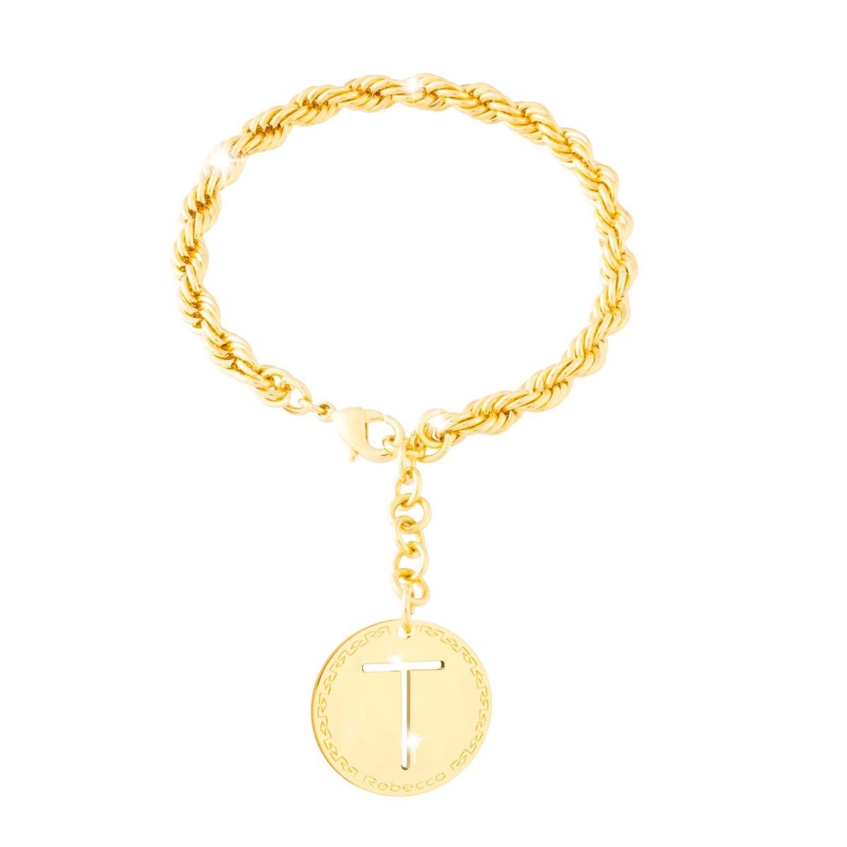 Bracciale donna rebecca, BWVBOT20, collezione My World Alphabet, in acciaio dorato con lettera pendente di 2cm. lunghezza 18, 5cm. LETTERA T.