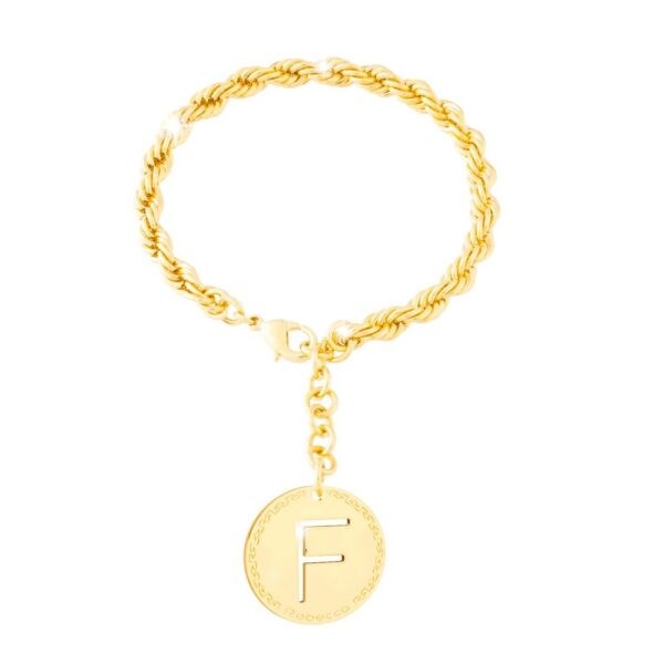 Bracciale donna rebecca, BWVBOF06, collezione myworld alphabet, in bronzo placcato oro, lunghezza 24cm regolabile