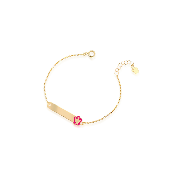 Bracciale bambina roberto giannotti, NKT377, collezione giardino degli angeli, in oro 9kt e smalto rosa, lunghezza 14/16cm, lunghezza targhetta 2, 6cm possibilità d'incisione a discrezione del cliente