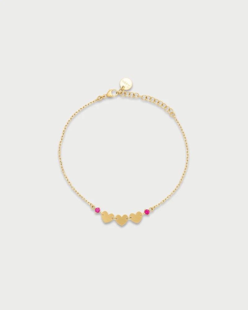 Bracciale donna Rue Des Mille, BRZ-024 M2 CUO AU, collezione essence, in argento 925 placcato oro giallo 18kt e zirconi rossi, misura 15cm+3cm