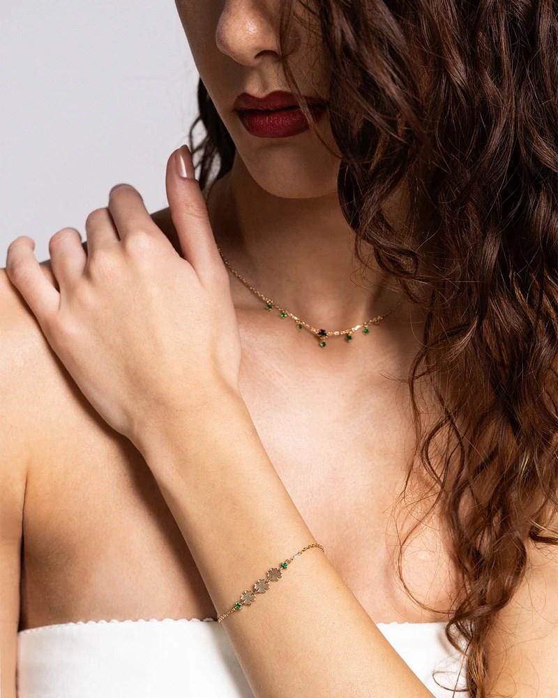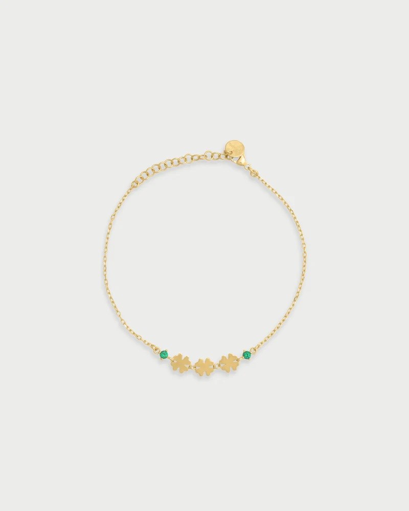 Bracciale donna Rue Des Mille, BRZ-024 M2 QUAD AU, collezione essence, in argento 925 placcato oro giallo 18kt e zirconi verdi, misura 15cm+3cm