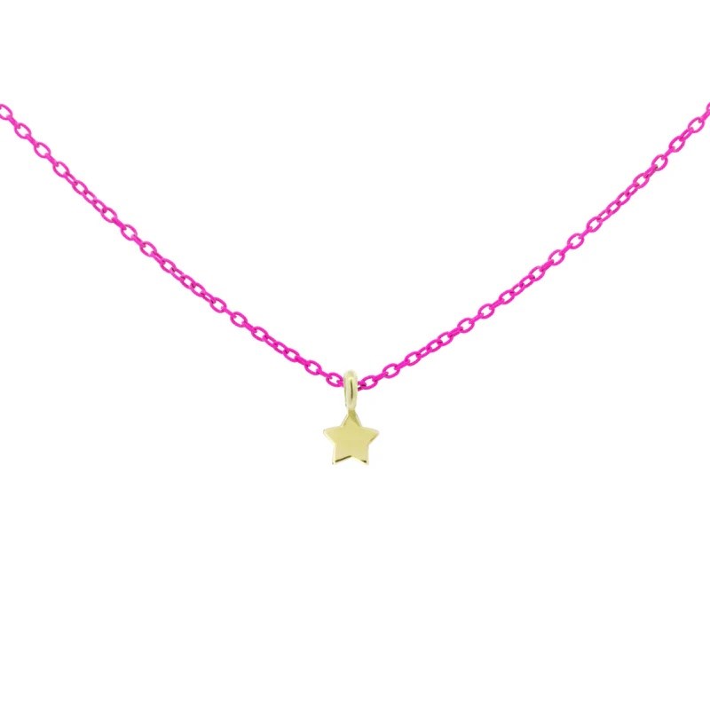 Collana donna rue de mille, 18K-GRV K1 STE, collezione goldenmate, in in oro 18 KT e rifinito a mano e catena verniciata rosa fluo su base argento 925, misura 38cm+4cm di estensione