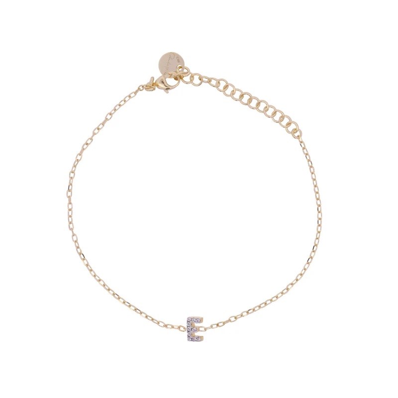 Bracciale donna rue de mille, BRZ-011 INIZ AU E, collezione stardust, in argento 925 placcato oro giallo 18kt e zirconi, misura 15cm+3cm di estensione