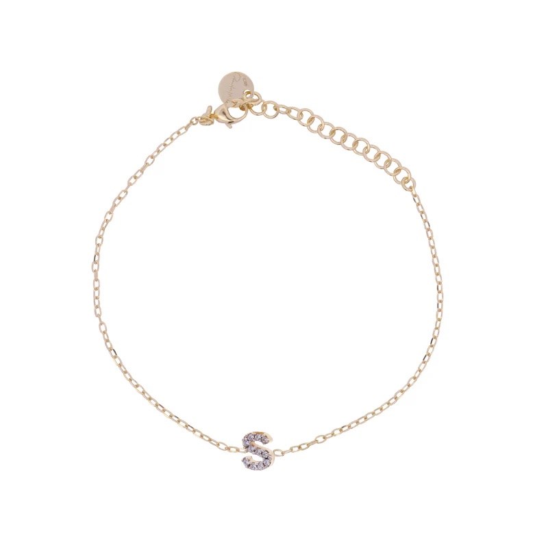 Bracciale donna rue de mille, BRZ-011 INIZ AU S, collezione stardust, in argento 925 placcato oro giallo 18kt e zirconi, misura 15cm+3cm di estensione