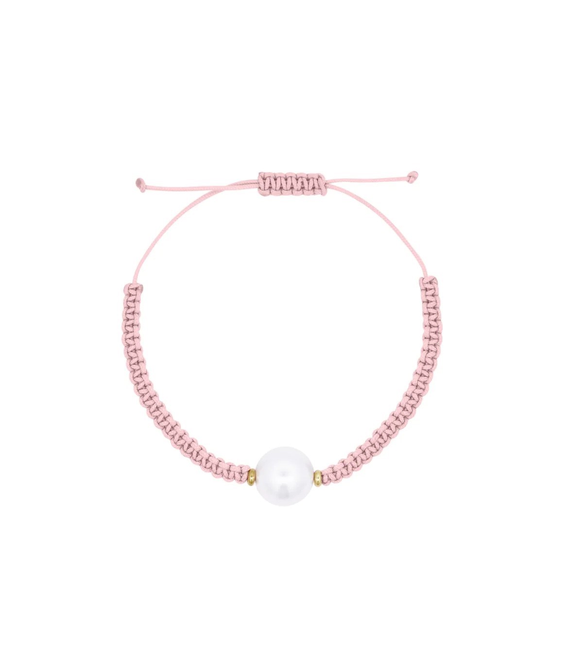 Bracciale donna rue de mille, BRZ-019 M4R AU, collezione whiteside, in argento 925 placcato in oro 18kt con perle e tessuto rosa, misura regolabile