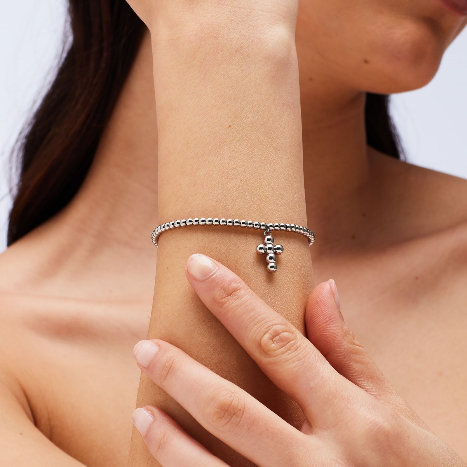Bracciale donna sagapò, SRD11, collezione arcadia, in acciaio 316L con pendente a forma di croce. lunghezza 18, 5cm