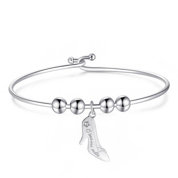 Bracciale donna sagapò, Sbm68, collezione be my always, in acciaio rigido e cristallo, pendente a forma di scarpa con incisione “C'era una volta...”, diametro 5, 8cm