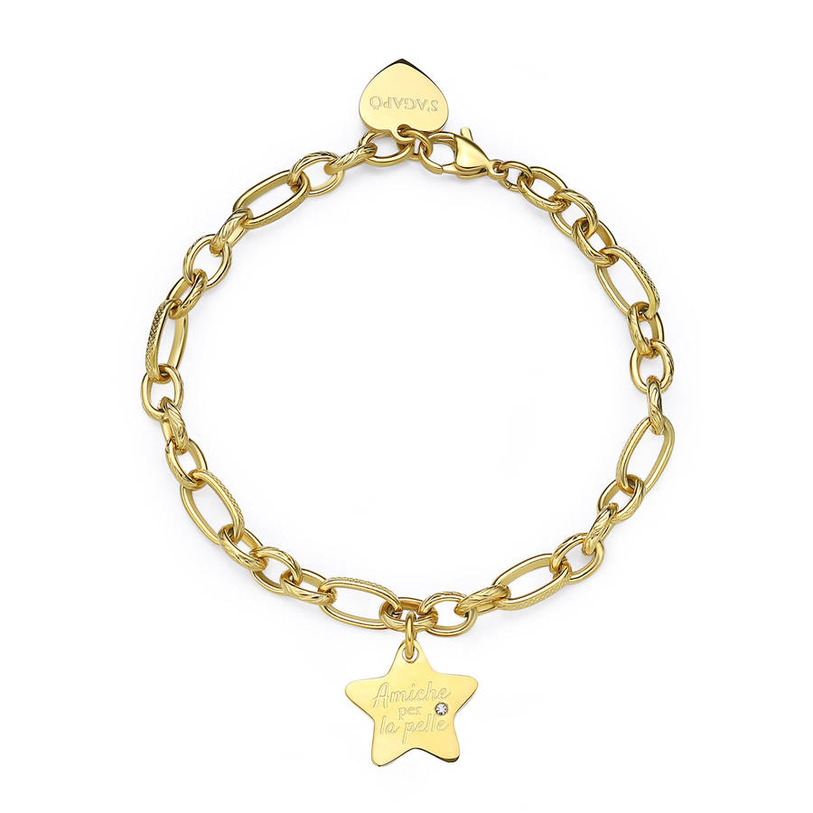 Bracciale donna s'agapo, SBY023, collezione be my family, in acciaio finitura oro 14k e cristalli, lunghezza 19cm