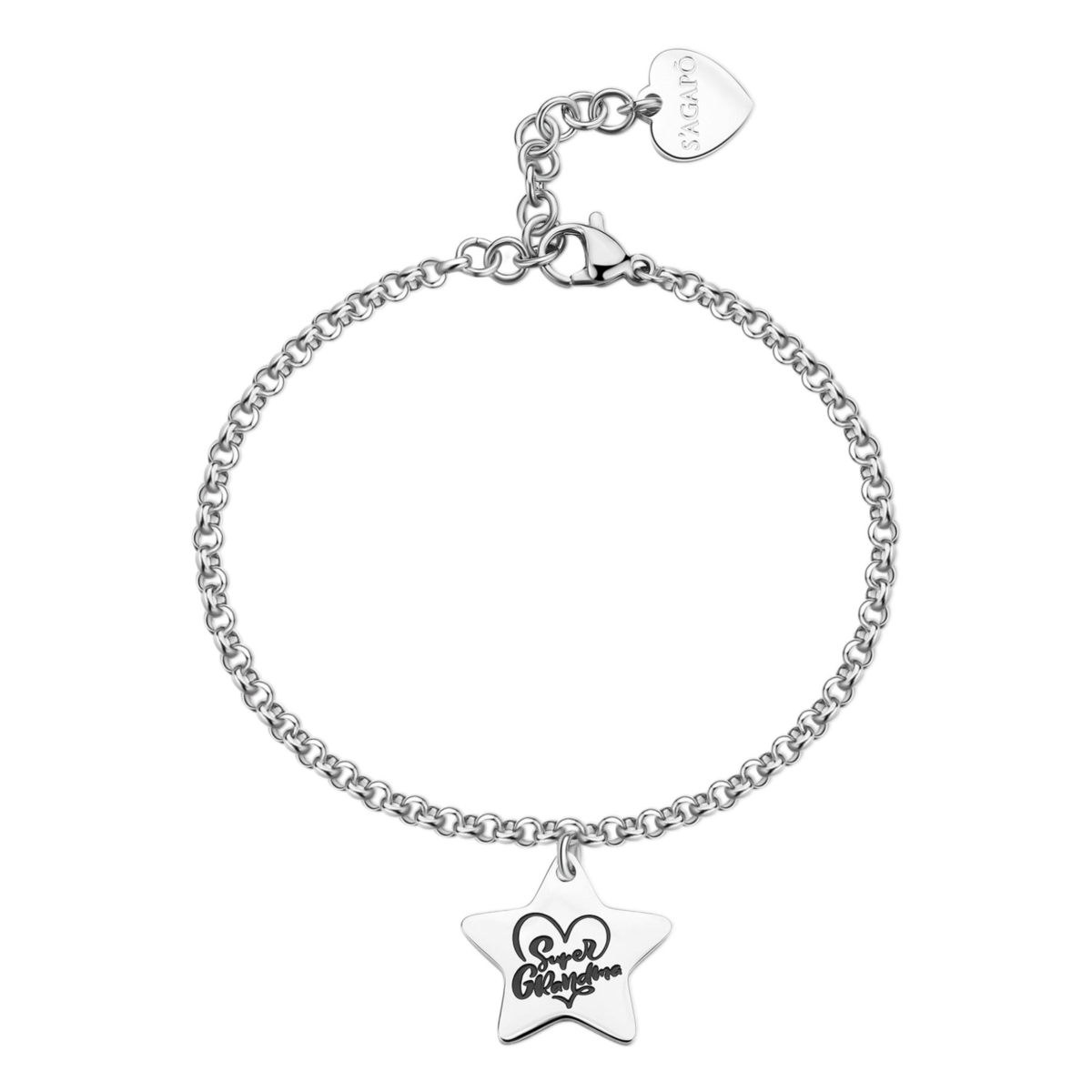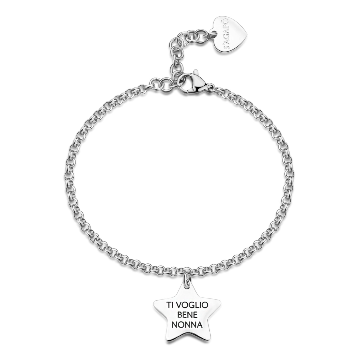 Bracciale donna s'agapo, SBY038, collezione be my family, in acciaio 316L con pendente a forma di stella con scritta "Super Grandma" in smalto nero su fronte e scritta "Ti voglio bene nonna" in smalto nero su retro, lunghezza 18, 5cm