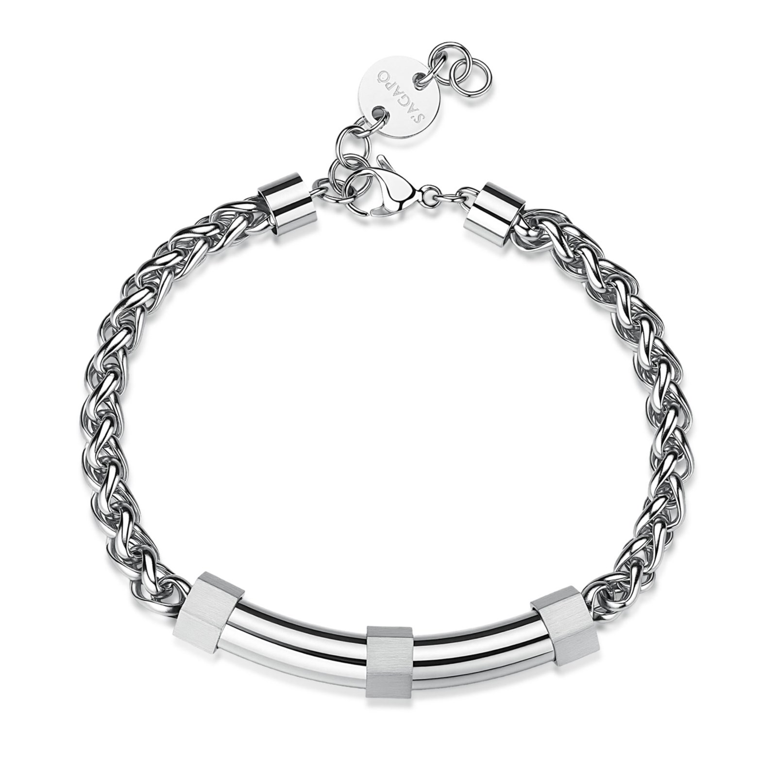 Bracciale uomo sagapò, SBD14, collezione bound, in acciaio 316L con catena e centrale con dettagli satinati.