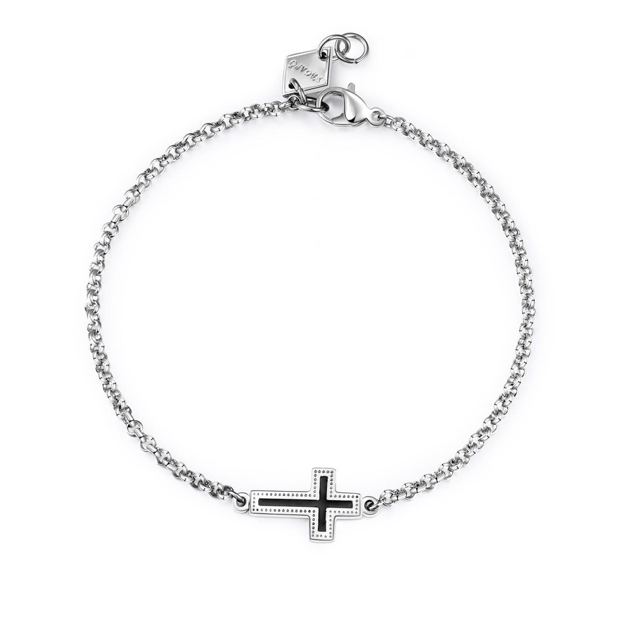 Bracciale uomo s'agapò, Shs11, collezione charisma, in acciaio con croce smaltata nera, lunghezza 21cm