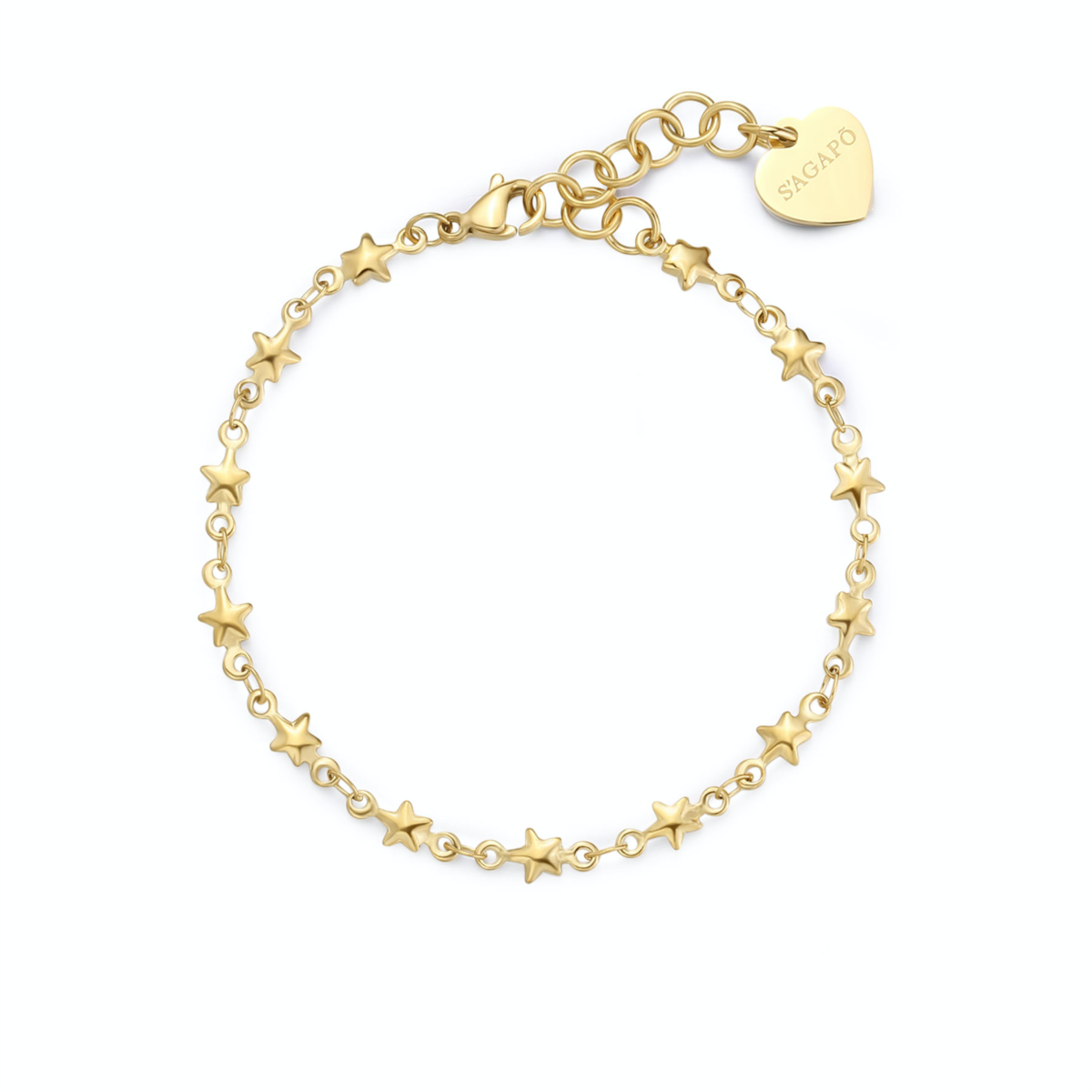 Bracciale donna sagapò, SHK100, collezione chunky, in acciaio dorato con catena a stelle
