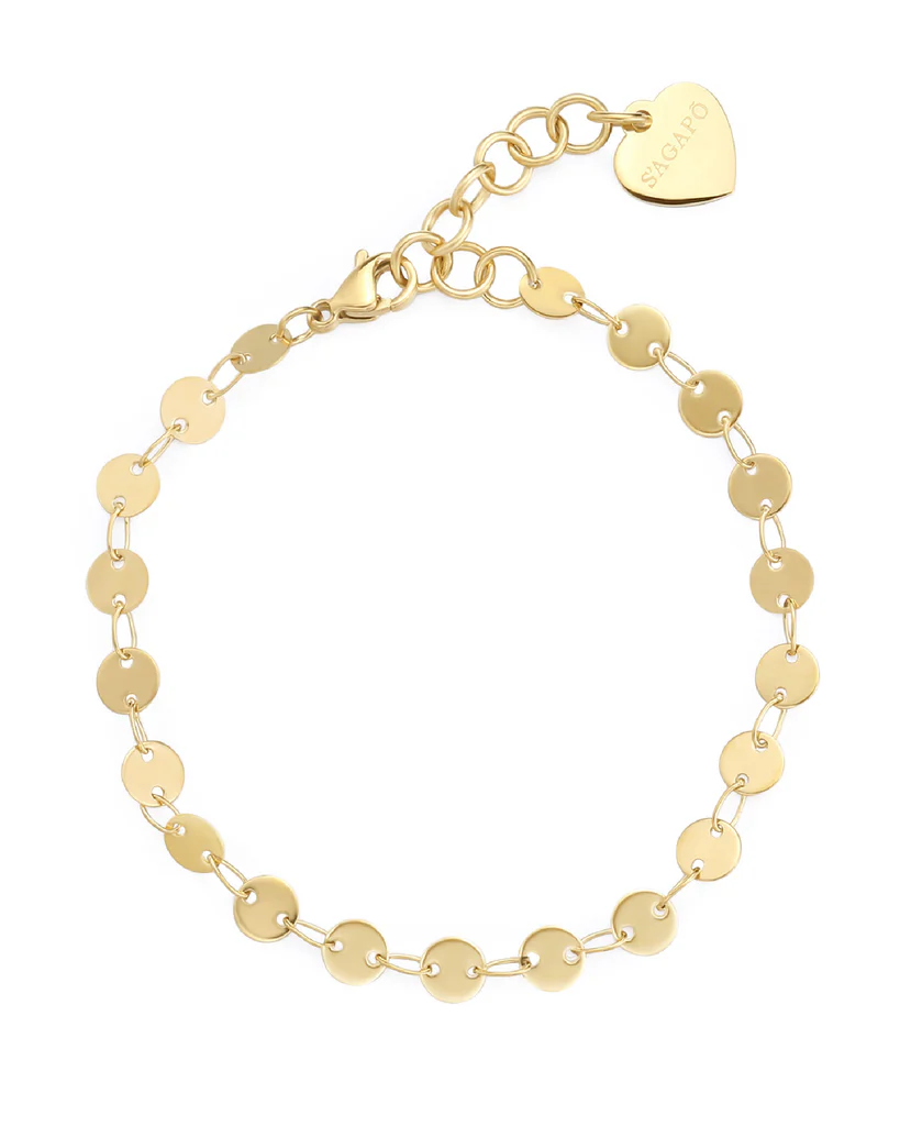 Bracciale donna sagapo, SHK101, collezione chunky, in acciaio inossidabile 316L con trattamento pvd oro caratterizzato da catena a dischetti con ciondolo a cuore.