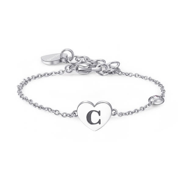 Bracciale donna sagapò, Sck120, collezione click, in acciaio, cristallo e lettera c con smalto nero, misura 18cm