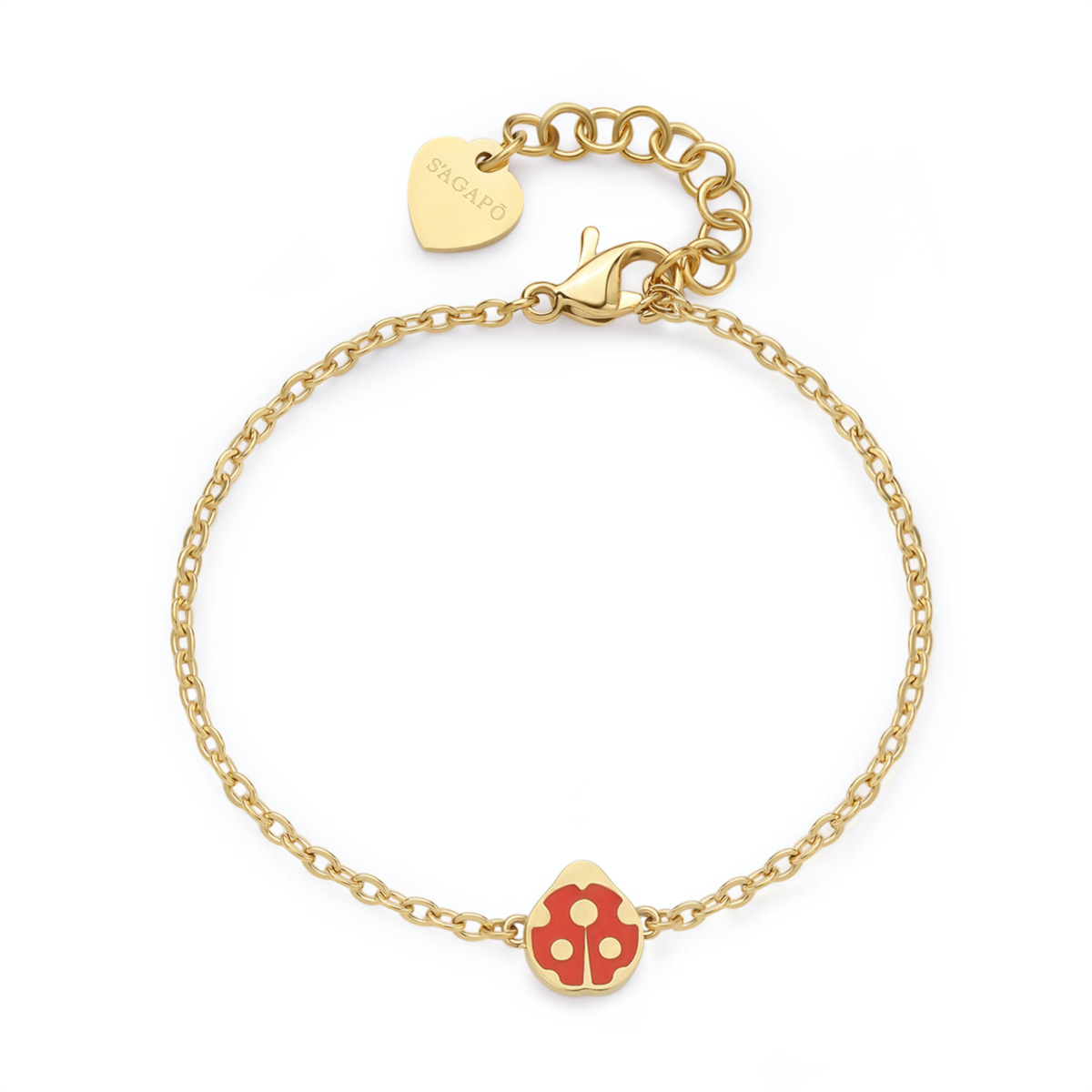 Bracciale donna sagapò, SCK267, collezione click, in acciaio dorato con pendente a forma di coccinella smaltata rossa, lunghezza 18cm