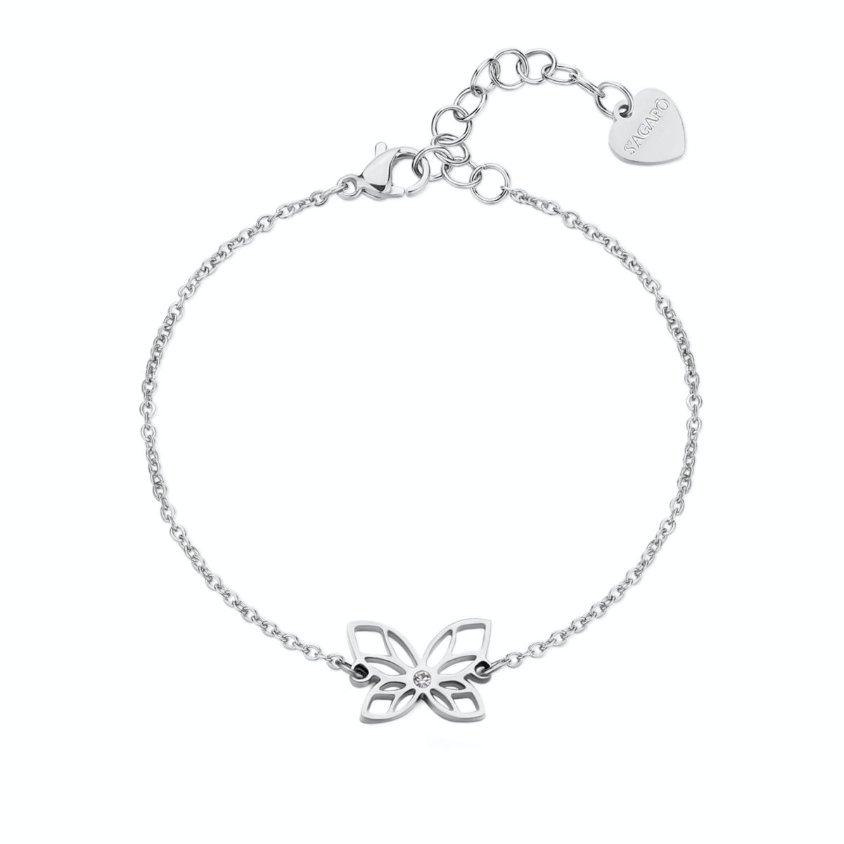 Bracciale donna sagapò, SCK274, collezione click, in acciaio 316L con centrale a forma di farfalla e cristallo.