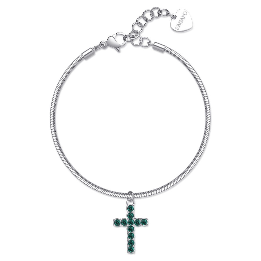 Bracciale donna sagapò, SDZ79, collezione dazzly, in acciaio 316L con pendente a forma di croce con cristalli colore emerald. lunghezza 18cm.