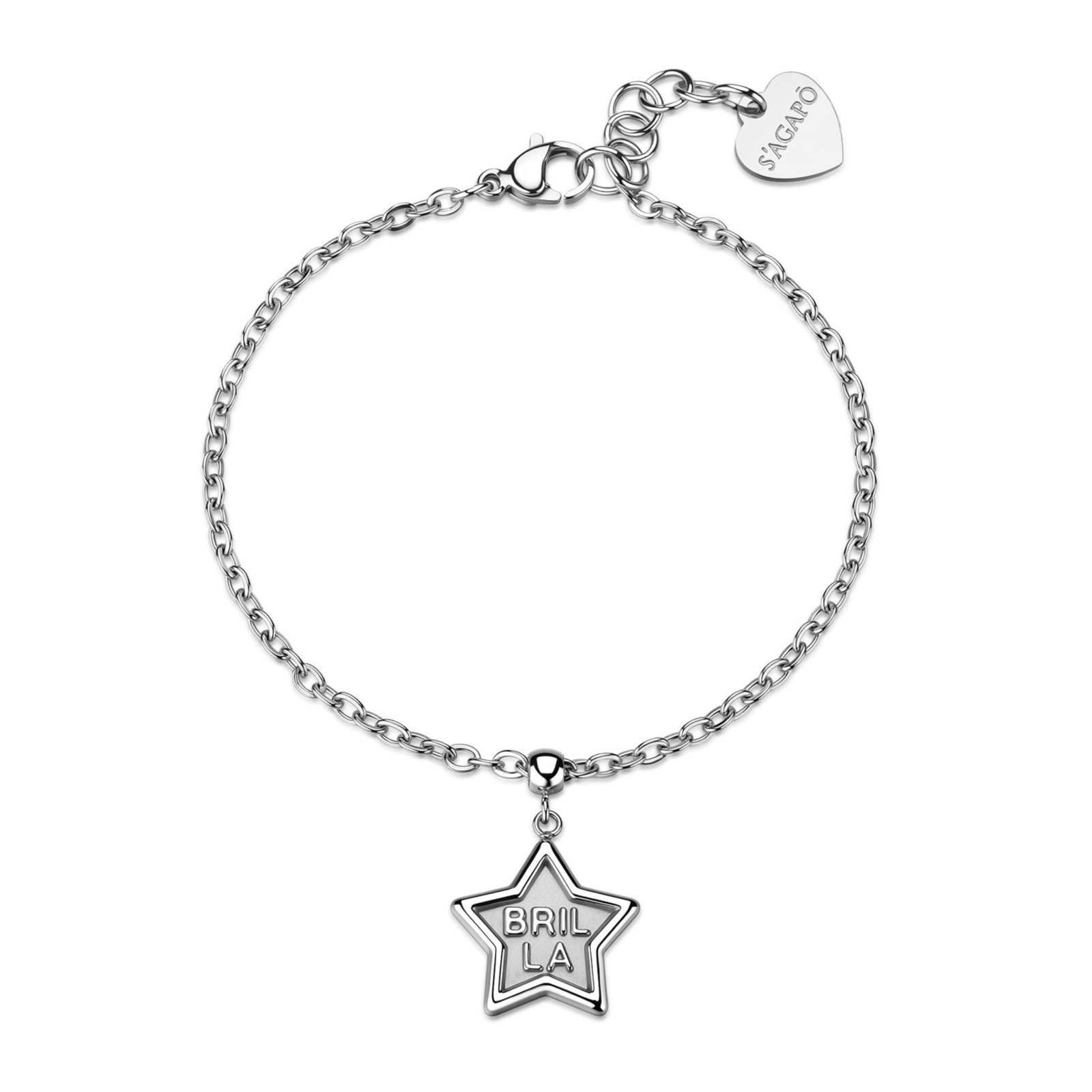 Bracciale donna sagapò, SUH18, collezione duh duh, in acciaio 316L con pendente a stella satinato scritta "Brilla".
