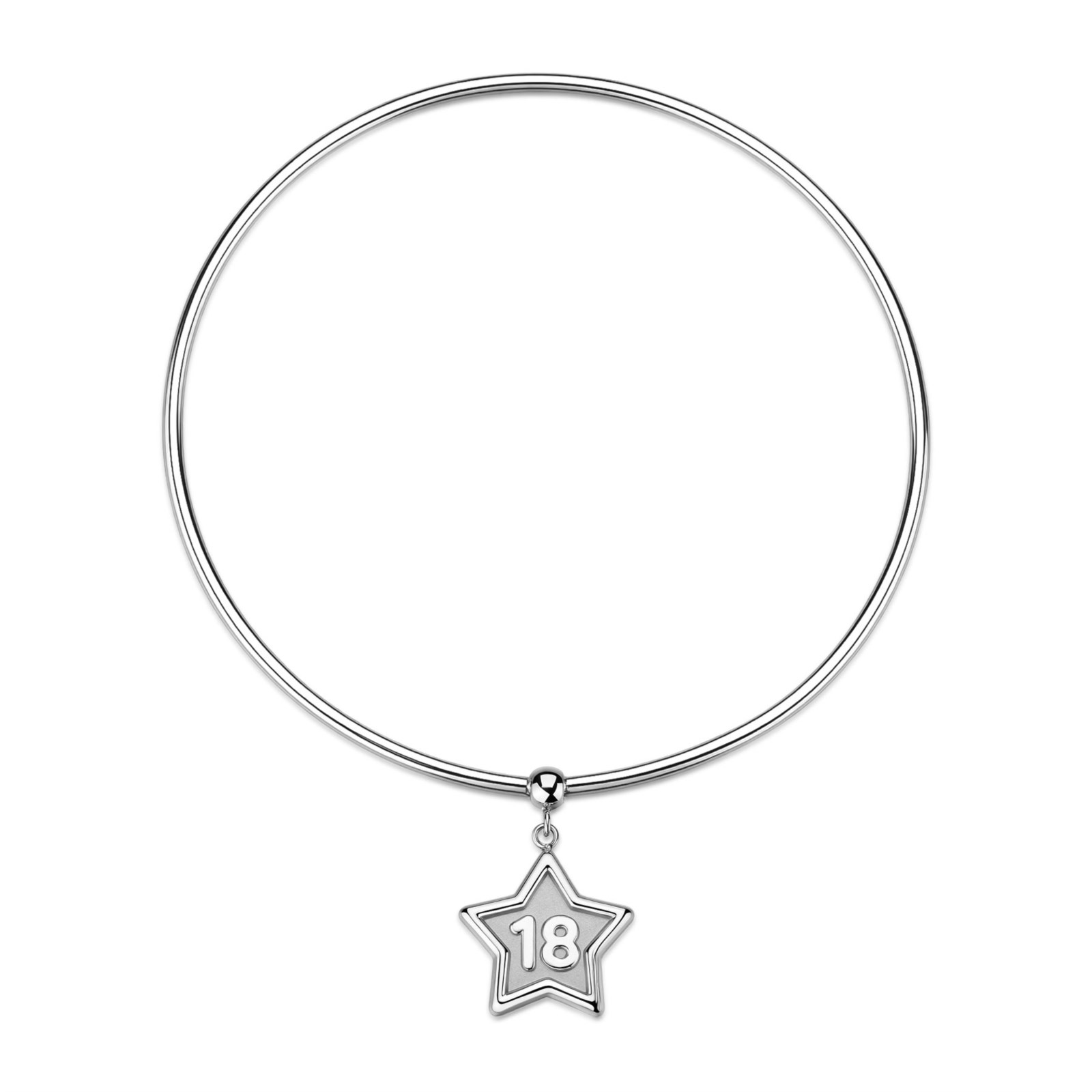 Bracciale donna sagapò, SUH23, collezione duh duh, rigido in acciaio 316L con pendente a stella satinato e scritta "18".