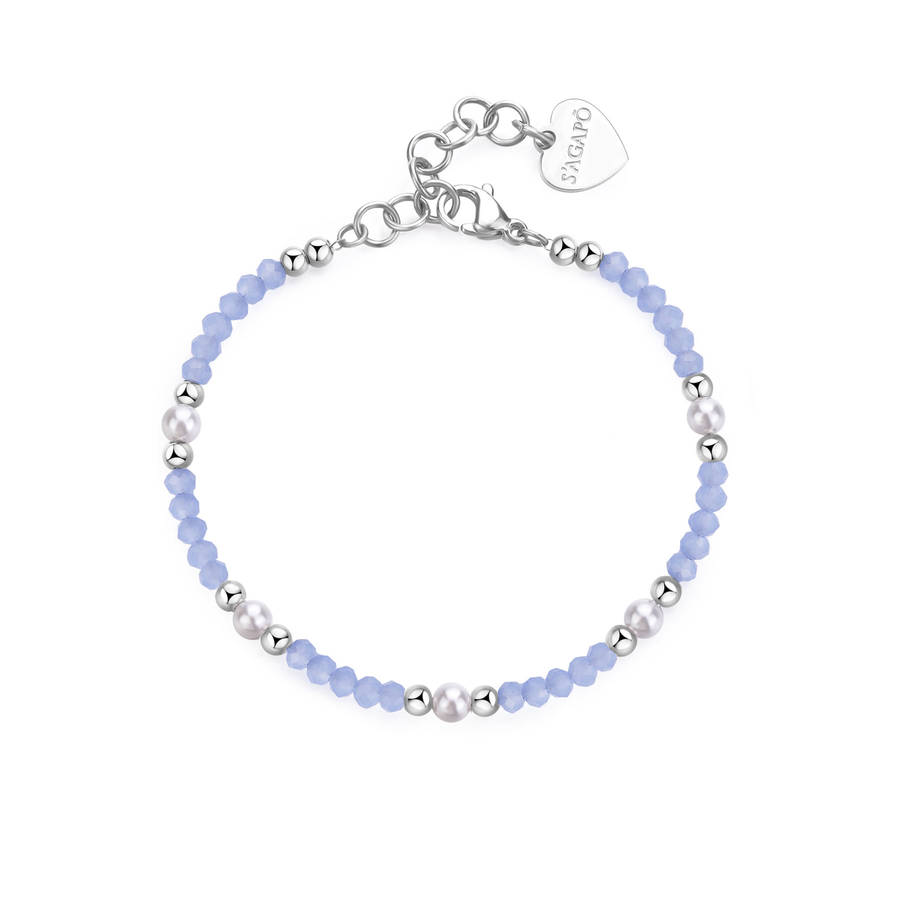 Bracciale donna s'agapo, SGI16, collezione glint, in acciaio 316L con sfere in vetro blu, acciaio 316L e perle, lunghezza 18, 5cm